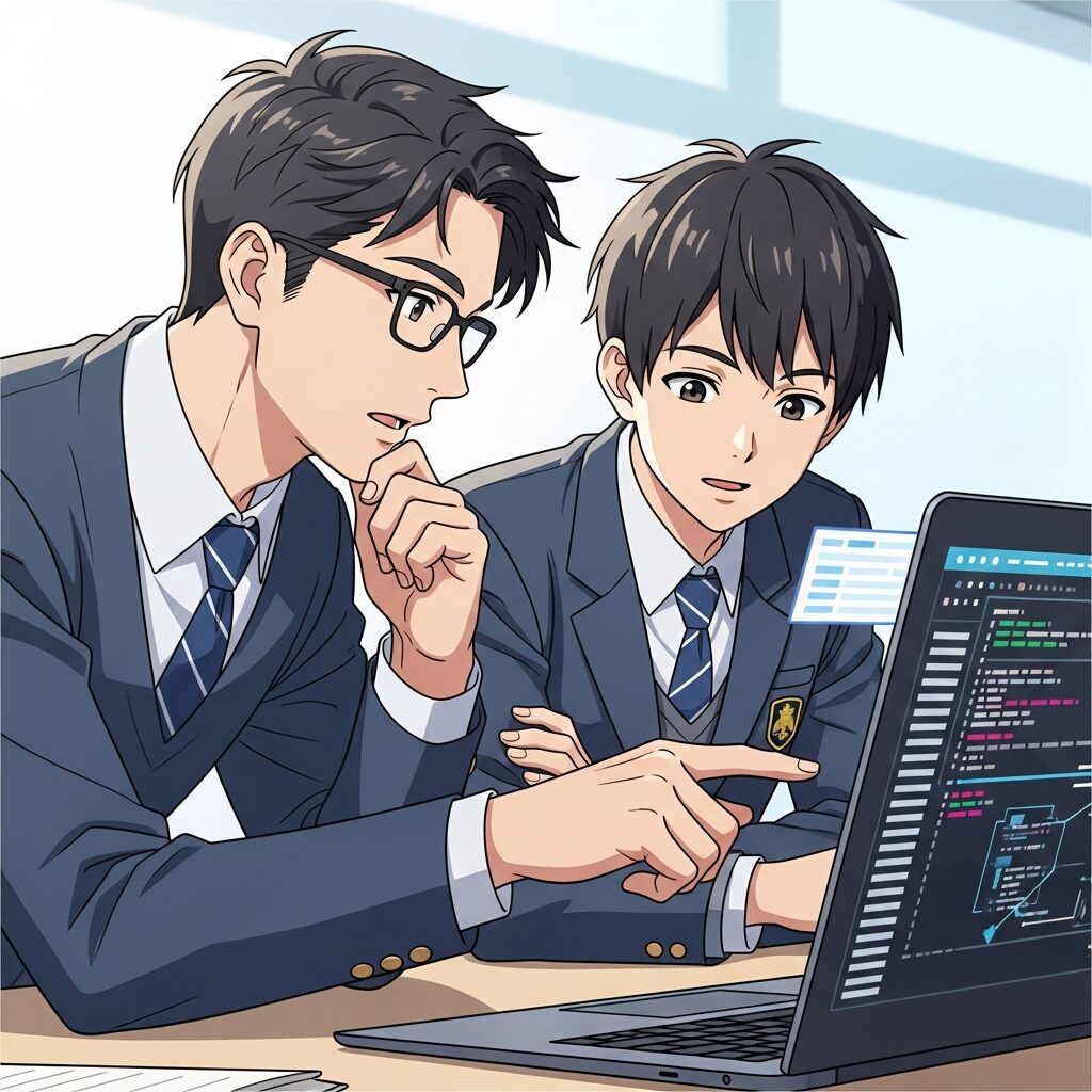 生徒とアプリ開発中。AI時代の高校生の挑戦