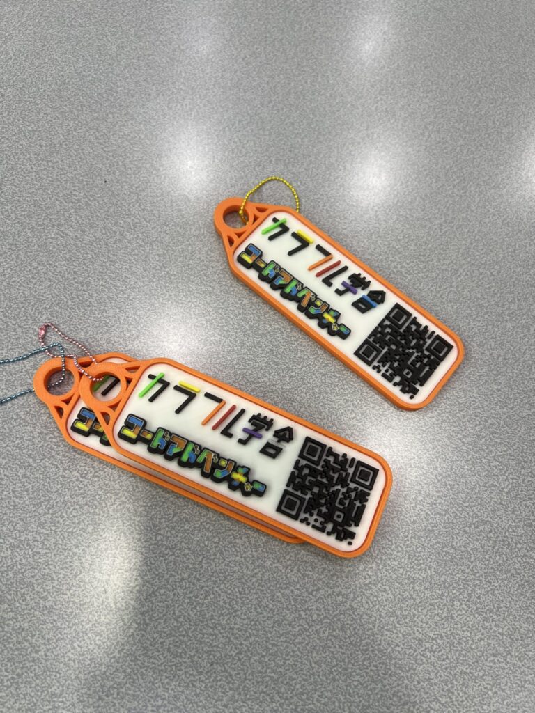 ・先日導入したばかりの3Dプリンターで制作したオリジナルキーホルダー